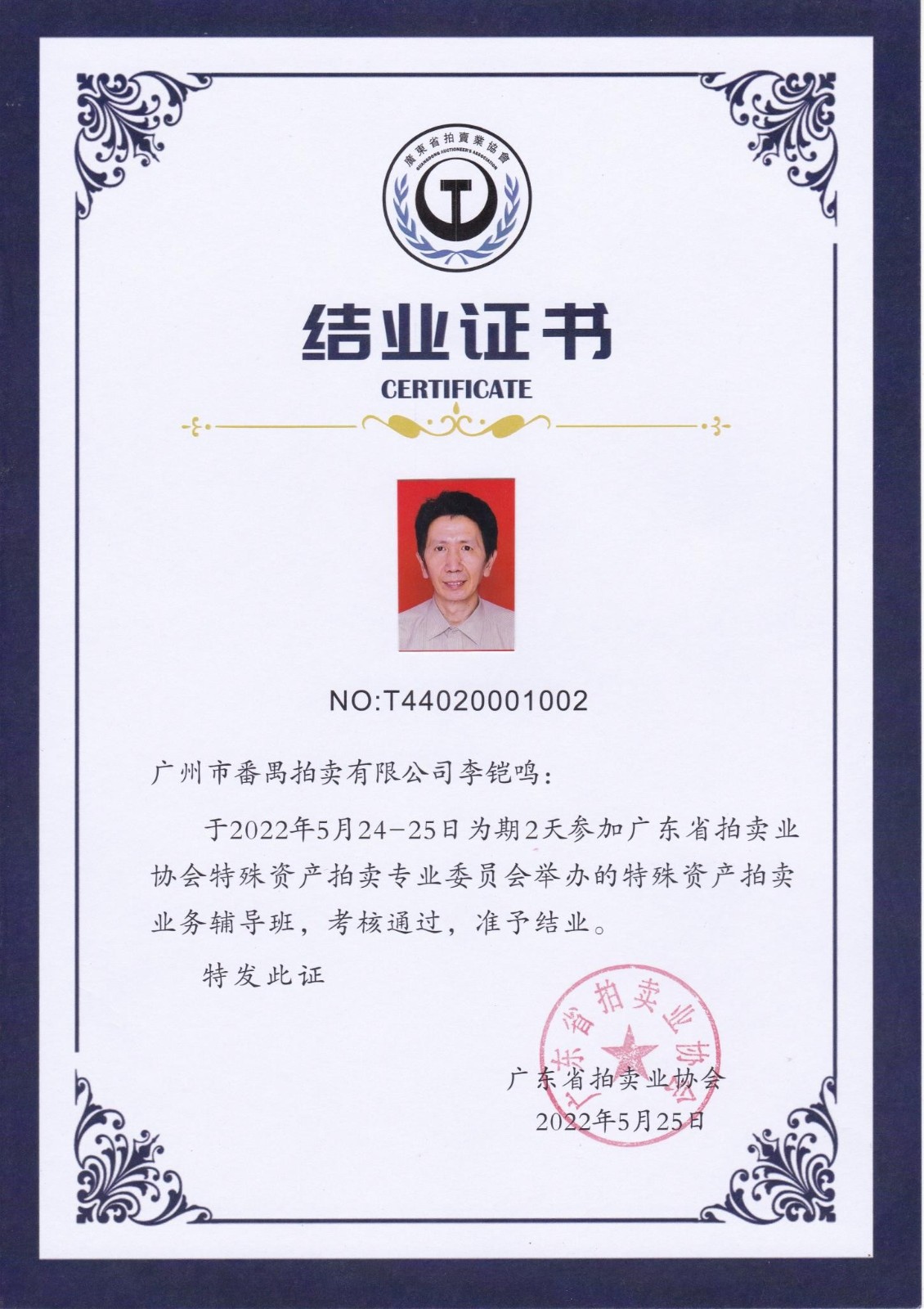 我司是番禺地区(现在的广州市番禺区和南沙区)经省、市政府有关部门审批成立的第一家拍卖企业,于1998年筹建,1999年正式成立,自成立至今从不拖欠员工的薪酬和合作人的分成,也从未变更法人代表和决策人,创造了中国拍卖行业史上筹建人、法人代表、决策人为同一人且工作时间延续超过 25年的纪录。期间曾任中国汽车流通协会常务理事、广东省企业家联合会和广东省企业家协会常务理事、香港《文汇报•拍卖产业导刊》理事、中国文物学会理事(法人代表任常务理事)、中国拍卖行业协会会员、广东省拍卖业协会理事等。